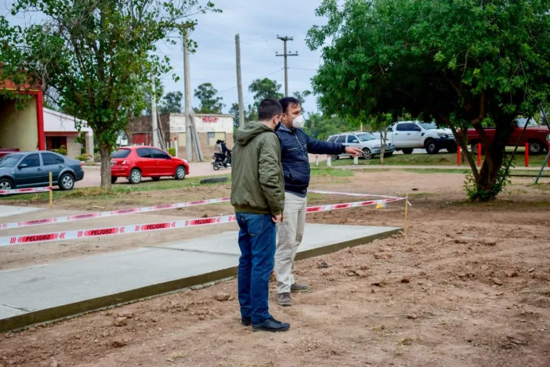 El intendente Bruno Cipolini junto al subsecretario de Obras, Milton Acuña, visitó la plaza ubicada en el barrio Antonio Zafra, donde actualmente se trabaja en la recuperación y mejoramiento de su espacio recreativo.Al momento, se realizó la nivelación de los pisos y se está avanzando en el hormigonado de la vereda perimetral, manteniendo el arbolado vigente.