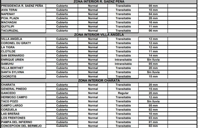 En cuanto a la zona de Sáenz Peña, en la ciudad termal solo cayó 8 mm de agua mientras que en Presidencia Plaza 26 mm.