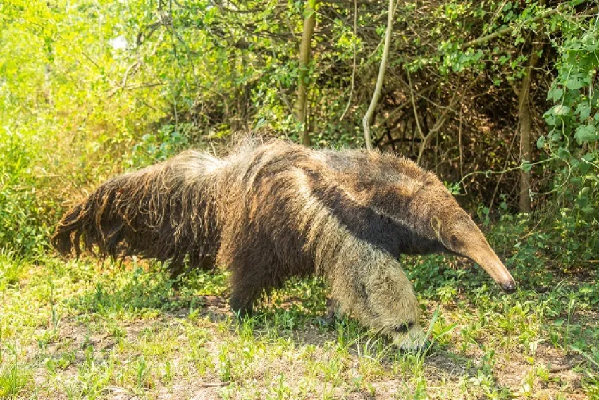 El oso hormiguero es un peculiar animal de la fauna silvestre de la región y se caracteriza por tener una cabeza alargada y una boca pequeña, sin dientes. Tiene una larga y pegajosa lengua que utiliza para obtener su alimento, constituido básicamente por hormigas y termitas.