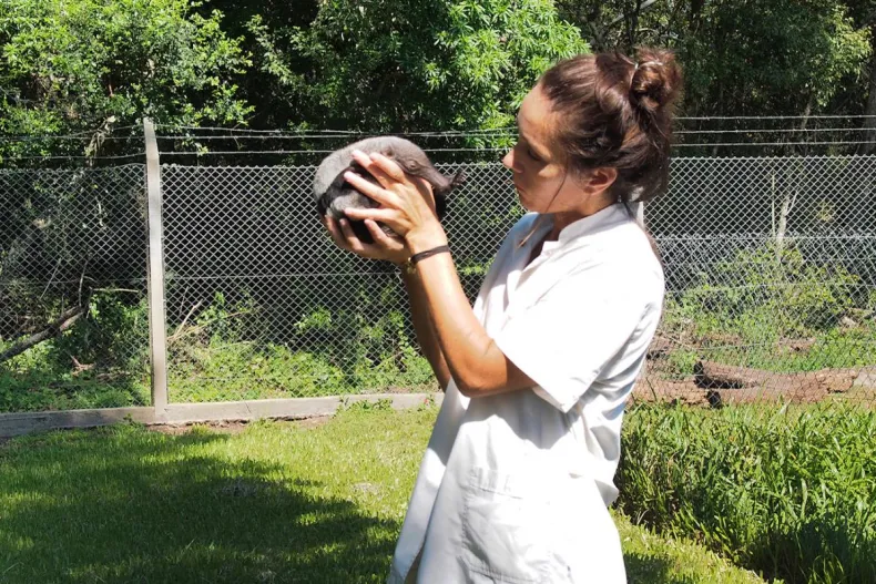 La bióloga Delgado, oriunda de Mercedes-Corrientes, trabaja con osos hormigueros en la Fundación Rewilding Argentina, como responsable de cuarentena y centro de rescate, y habló sobre la situación del peculiar animal.