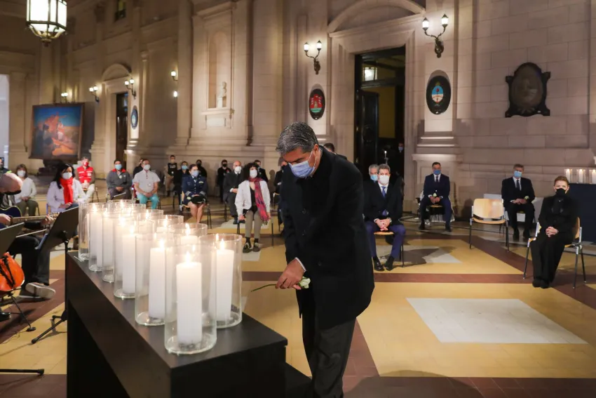 "Junto al Presidente Alberto Fernández homenajeamos a las y los fallecidos por Covid-19 en Argentina", contó el gobernador a través de sus redes sociales.