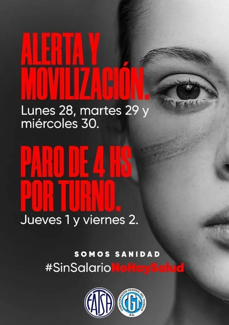La convocatoria es para todos los trabajadores de clínicas, sanatorios, hospitales, servicios de emergencias, centros de diagnóstico, laboratorios de análisis clínicos, institutos geriátricos e institutos psiquiátricos.