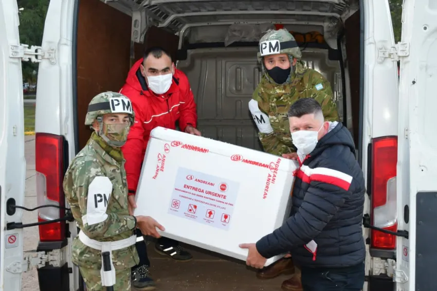 Las conservadoras dotadas con las 30.100 dosis de AstraZeneca ingresaron a la Base de Apoyo Logístico Resistencia del Ejército Argentino y al Departamento de Inmunizaciones, para su almacenamiento, fraccionamiento y distribución en las diferentes Regiones Sanitarias y distritos chaqueños. La ministra de Salud Pública Paola Benítez, el jefe del Departamento de Inmunizaciones Daniel Antúnes y agentes de la cartera sanitaria, del Ejército Argentino y del correo formaron parte de la comitiva que recibió un nuevo envío de vacunas para el Chaco.