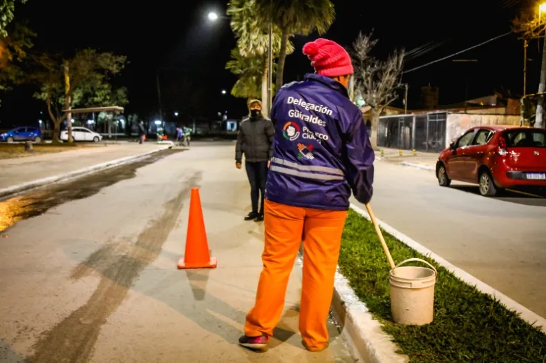 El director de la delegación municipal del barrio Güiraldes, Francisco Lugo, comentó que por la noche al haber menos tránsito de vehículos cumplen tareas de barrido. Asimismo, agregó que realizan servicios de compacto durante toda la noche y otro equipo de trabajo interviene en la limpieza alrededor de los contenedores de basura.
