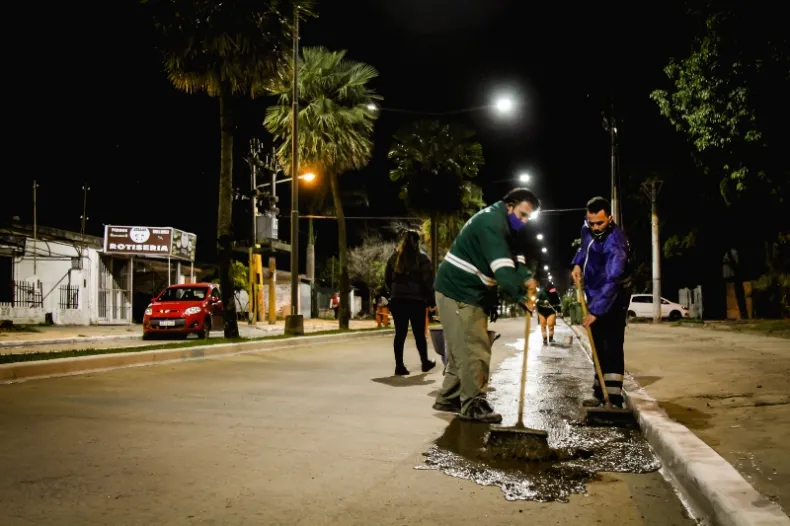 En horas de la noche, la municipalidad de Resistencia intervino con tareas de barrido y pintura de cordones sobre la calle Soldado Aguilera del Barrio Güiraldes. Estos trabajos de saneamiento se llevan a cabo diariamente a fin de mantener y conservar las calles del área mejorando la calidad de vida de vecinos y vecinas.