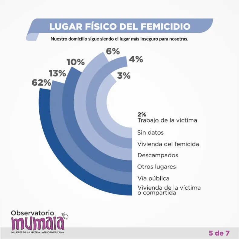 En cuanto al lugar del femicidio, el 62% se ejecutó en la vivienda de la víctima o vivienda compartida y las provincias en las que se registraron las tasas más altas de femicidios fueron Santiago del Estero, Neuquén, La Rioja, Formosa y Tucumán.