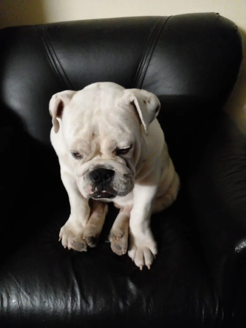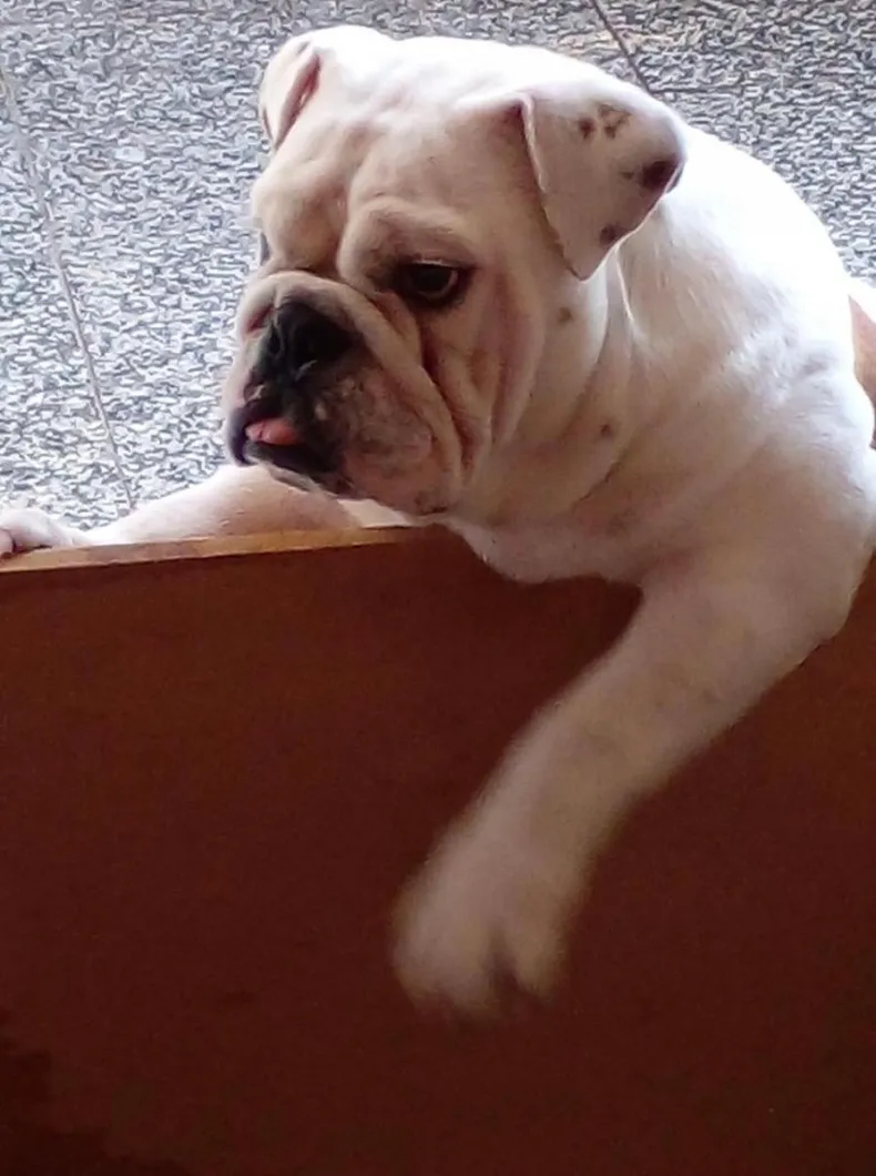 El animal es de raza bulldog inglés de color blanco y desapareció ayer de su casa ubicada en Vedia 1.087.