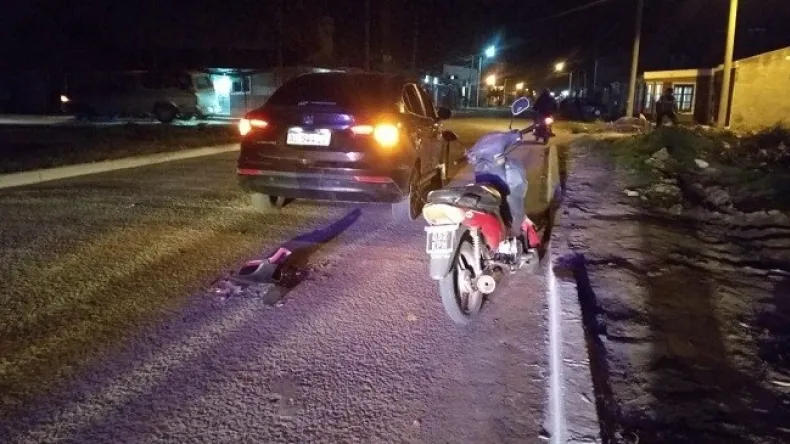 Dos ocupantes de una moto terminaron con lesiones luego de chocar contra un auto