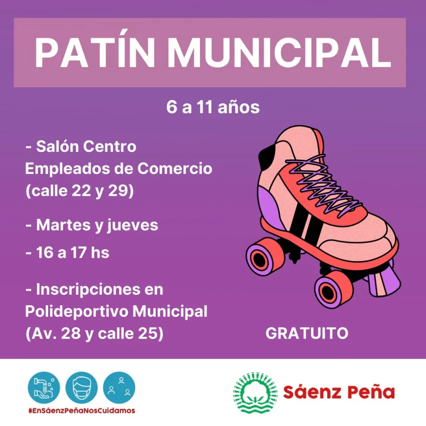 Además, desde la subsecretaría de Deportes solicitan a aquellas personas que tengan patines que ya no usen y que estén en buenas condiciones, pueden donarlos para los niños que desean tomar clases de patín y no cuentan con el mismo. Los interesados en colaborar deben acercarse al Polideportivo Municipal de lunes a viernes de 8 a 12 horas.