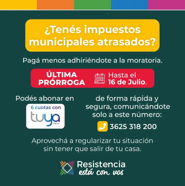 El Municipio de Resistencia extiende hasta el 16 de julio la moratoria para cancelar deudas