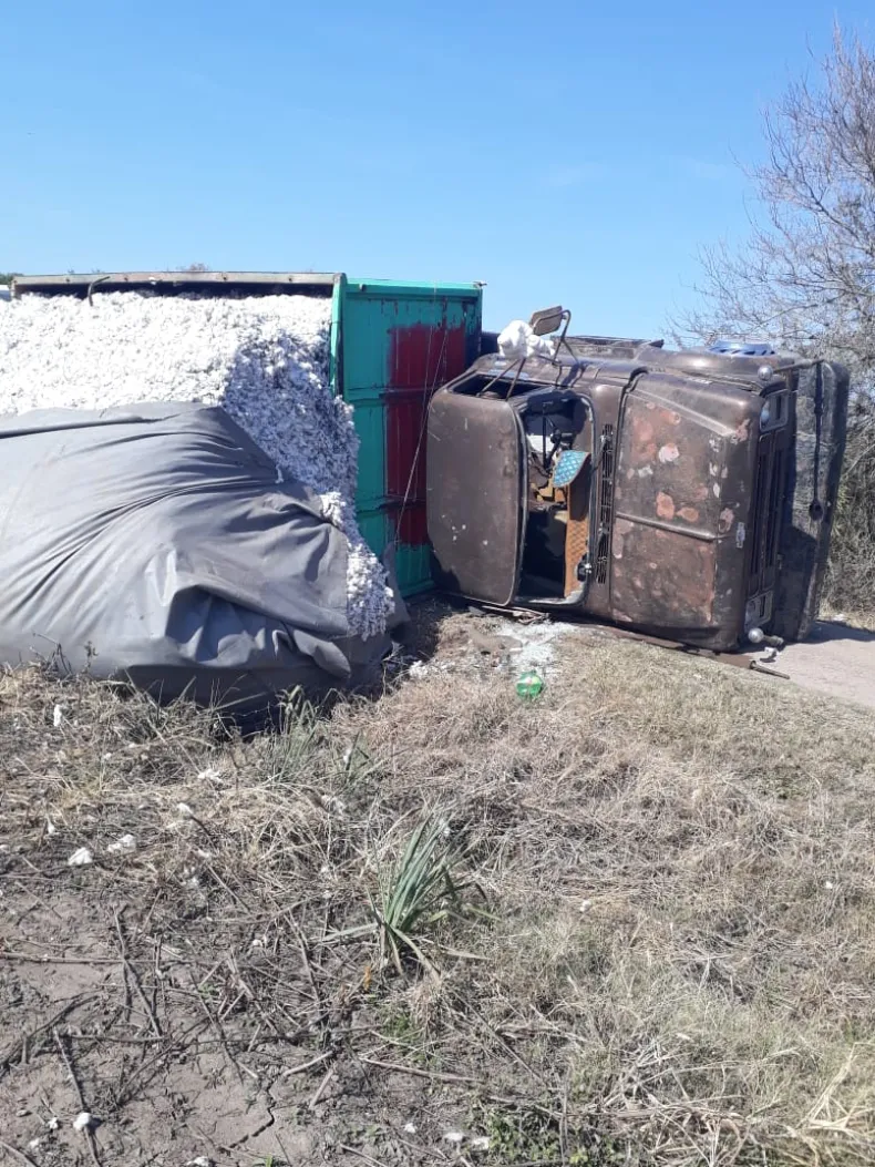 El incidente se dio en horas del mediodía, cuando en un camino rural a unos 5 kilómetros de Ruta N° 95, un camión que llevaba algodón terminó volcando.