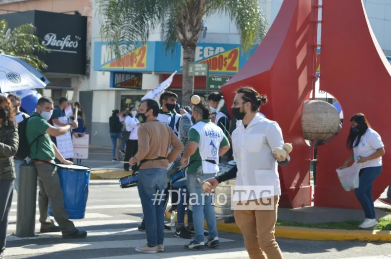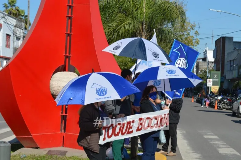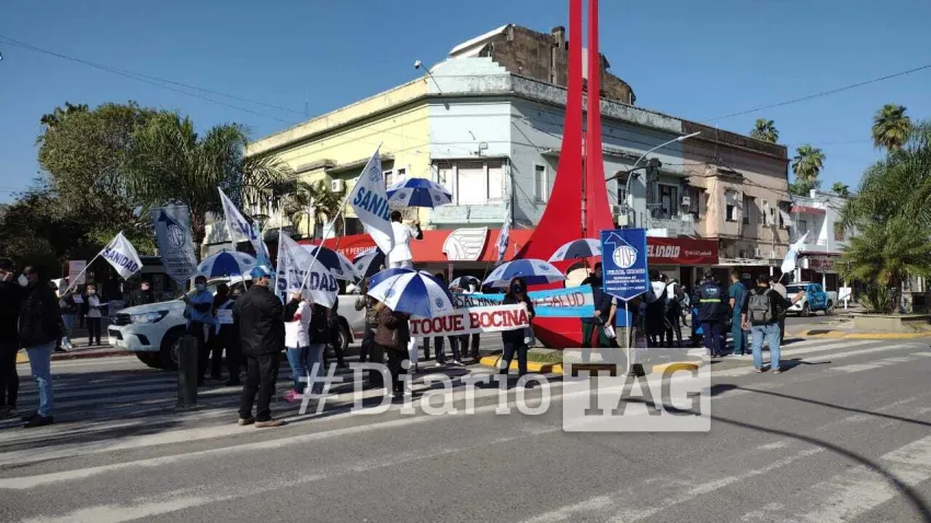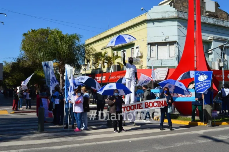 Los trabajadores de la salud privada de Chaco se manifestaron este martes a la mañana en la peatonal de Resistencia, donde se llevaba a cabo un operativo de vacunación, en reclamo de mejoras salariales.