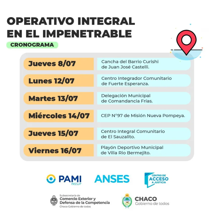 El gobierno provincial desarrollará, en conjunto con los gobiernos nacional y municipal, un nuevo operativo integral de asistencia y atención territorial en El Impenetrable chaqueño. La jornada inaugural iniciará este jueves 8 de julio, a las 14, en la cancha de fútbol del Barrio Curishi de Juan José Castelli.