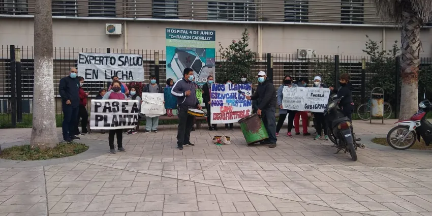 Precarizados de Salud se manifestaron en la vereda del Hospital 4 de Junio
