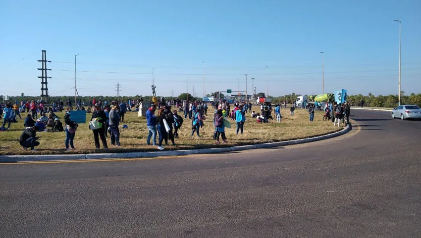 Un grupo de manifestantes se concentraron en la rotonda de la Ruta Nacional N°16 que está cerca del puente Chaco-Corrientes para reclamar por distintos motivos y realizaron un corte a la altura del peaje.