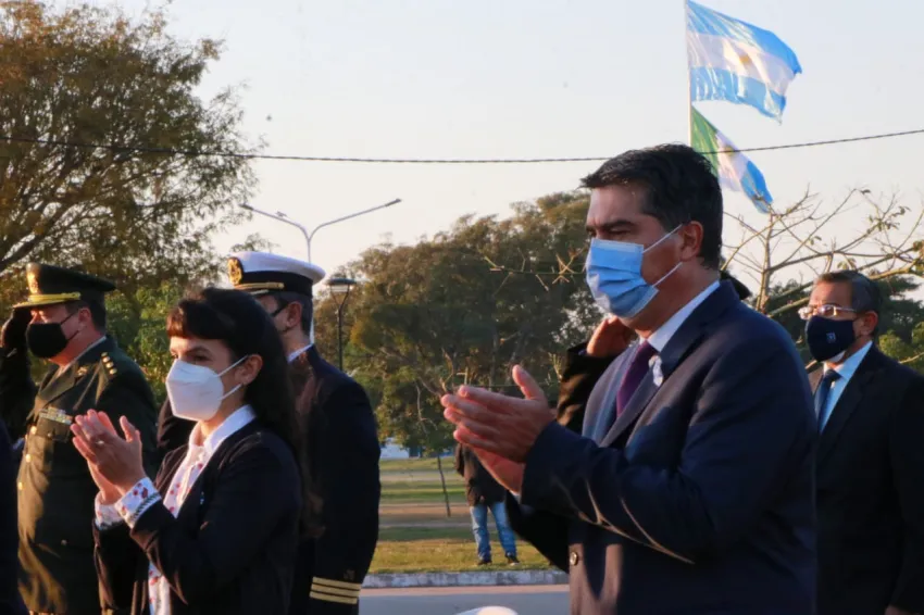 El gobernador Jorge Capitanich encabezó este viernes en el Parque de la Democracia, junto a la vicegobernadora Analía Rach Quiroga, el izamiento de la bandera nacional en conmemoración por los 205 años de la declaración de la Independencia Argentina. Allí, reconoció el legado de los próceres y héroes de la historia nacional que hicieron posible este hecho "fundacional para la Patria".