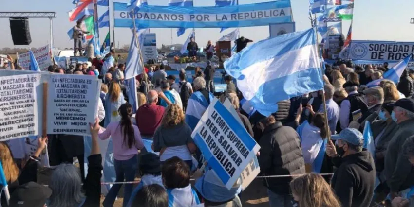 No se observaron representaciones políticas, pero sí participaron como asistentes en la protesta en San Nicolás la titular del PRO, Patricia Bullrich, y el líder del Partido Libertario, José Luis Espert, entre otros dirigentes.