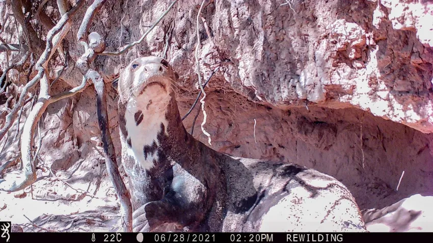 La Fundación Rewilding Argentina que se encuentra en el Parque Nacional El Impenetrable dio la noticia de que Teuco, la nutria gigante del Bermejo, es un macho, tras poder verlo por primera vez fuera del agua.