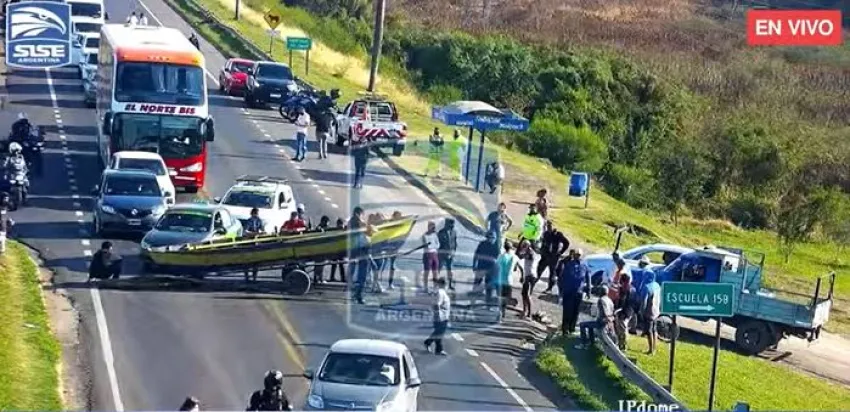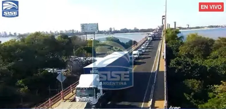Un grupo de pescadores cortaron el tránsito en el Puente Chaco-Corrientes con una canoa en el medio de la ruta para reclamar poder realizar su actividad normalmente.