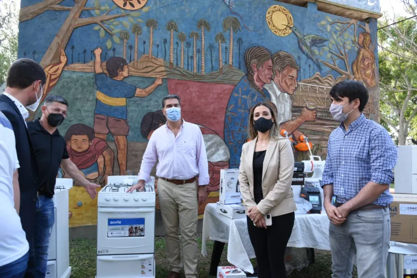 En la oportunidad entregó equipamiento al Municipio a través de la Línea 613 del Banco del Chaco y elementos a emprendedores locales por medio de la Fundación Chaco Solidario, además de un patrullero para reforzar la seguridad.