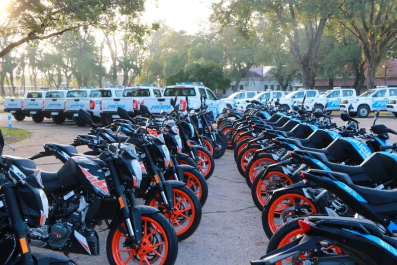 Durante el acto, también se entregaron equipos estructurales y de salvataje para bomberos, y chalecos antibalas y armamento a los efectivos policiales con una inversión de $360.536.565. Además, durante el acto, se exhibieron 77 camionetas Toyota y Nissan recientemente adquiridas y entregadas a la Institución policial, por una inversión de $273.282.240 y 100 motocicletas, con una inversión de $87.254.325. En total, la provincia cuenta con 121 automóviles, 485 camionetas pick up y 764 motocicletas.