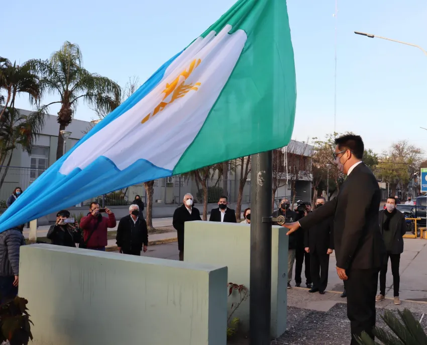 El intendente encabezó el izamiento realizado en el mástil frontal al Municipio para conmemorar el Día de la Bandera de Resistencia, acompañado de las concejales Teresa Celada y Katia Blanc; el creador de la homenajeada insignia, Sacha Mijail Vanioff; y demás miembros del jurado de aquel concurso que promovió el nacimiento de este estandarte.