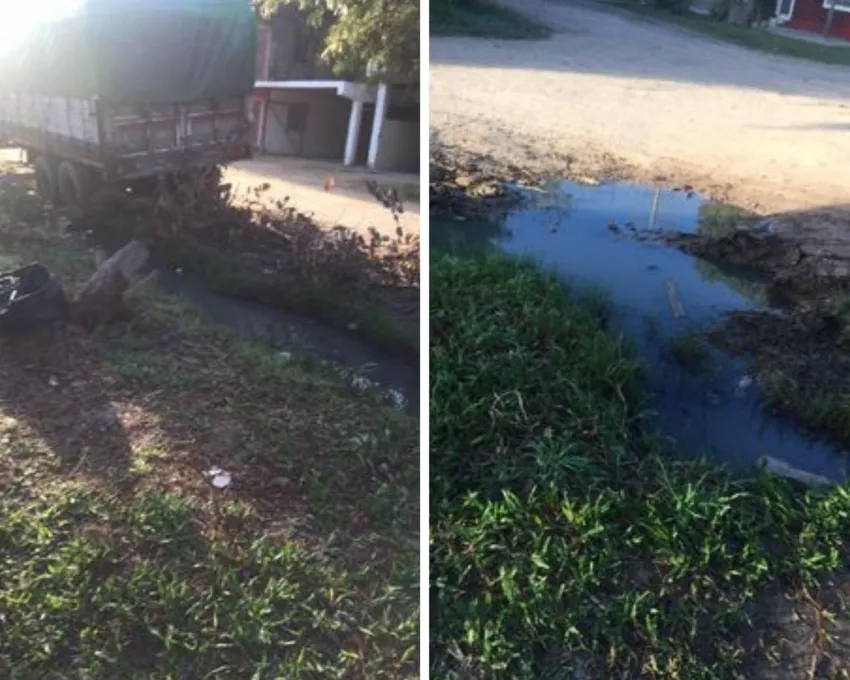 Un camión rompió una zanja y quedó el agua podrida frente a su casa: "Esto es reiterativo"