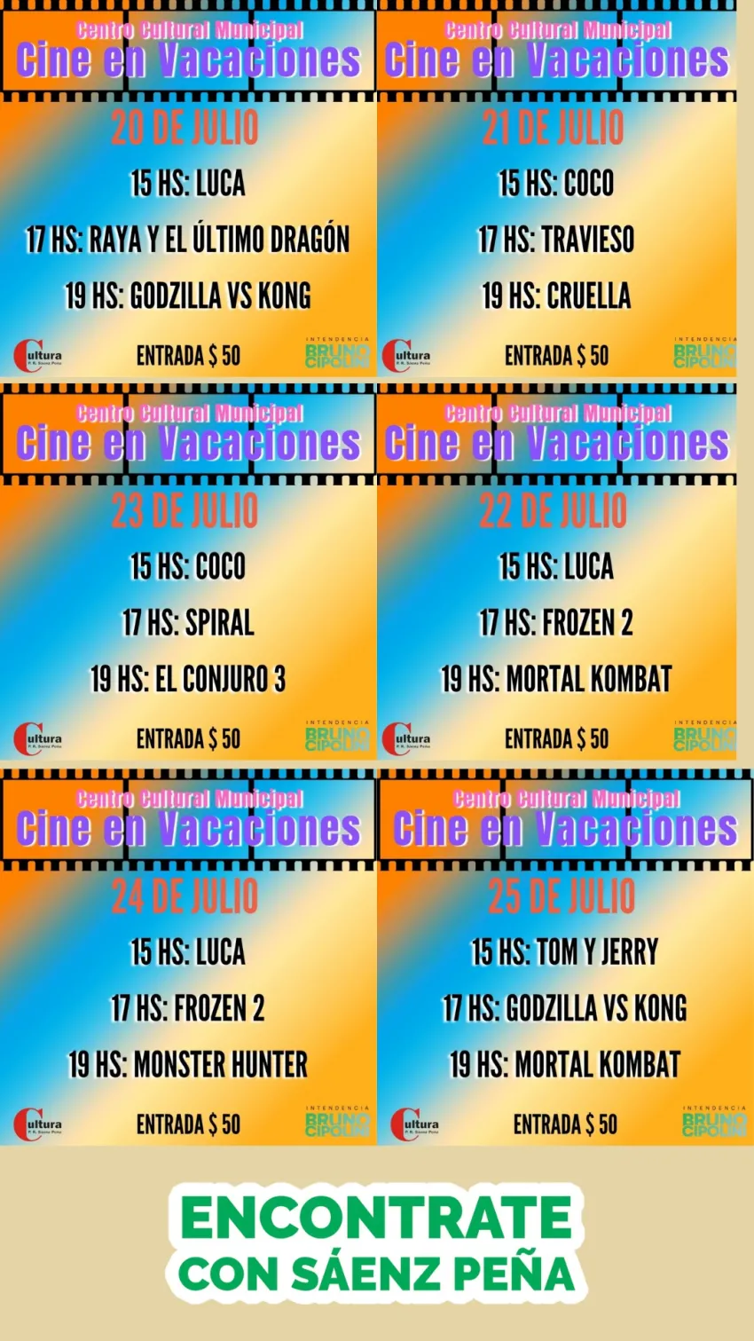 Con los últimos estrenos y los títulos más requeridos, Sáenz Peña tiene la posibilidad de disfrutar de tres funciones diarias a las 15, 17 y 19 hs.