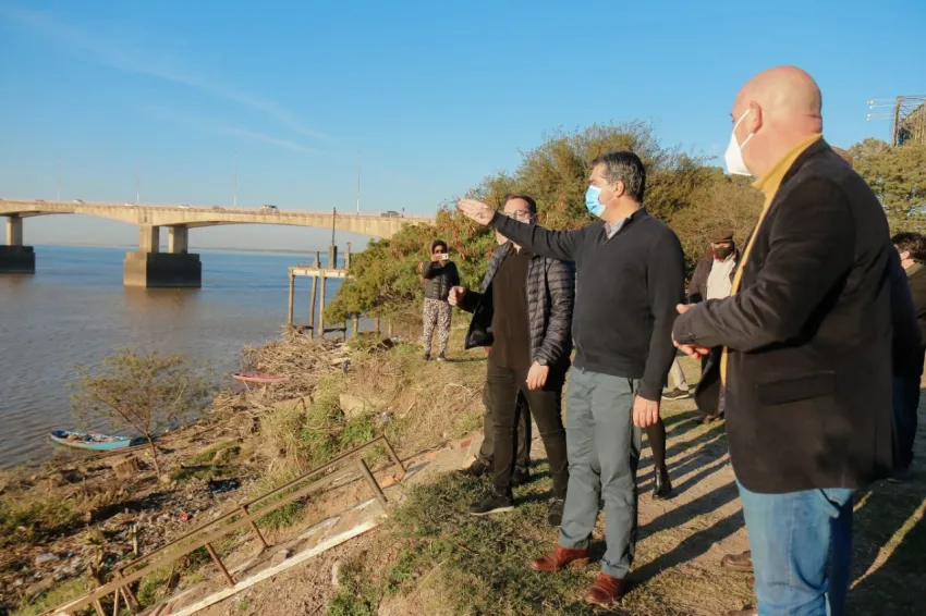 El gobernador Jorge Capitanich y el ministro de Planificación, Economía e Infraestructura, Santiago Pérez Pons, junto al presidente de la Administración Provincial del Agua (APA), Daniel Pegoraro, visitaron este jueves el barrio costero San Pedro Pescador, donde confirmaron el inicio de la obra del sistema de defensas a partir de la semana que viene.