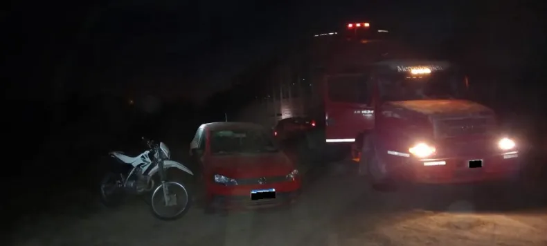 Por este motivo, comenzaron la verificación en la propiedad, donde primeramente incautaron 39 vacunos de la firma damnificada, como así también un automóvil marca Volkswagen Gol Trend, una motocicleta marca Honda 250cc, un camión jaula marca Mercedes Benz, la suma de $59.550, dos hierros de marcas, y tres celulares.