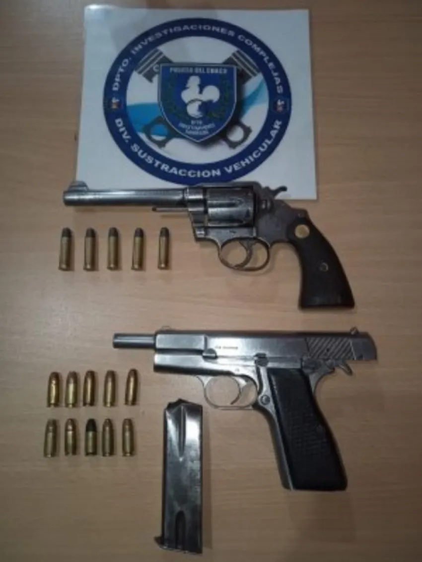 El seguimiento continuó hasta un domicilio de Calle León Zorrilla y Calle 7, lugar donde estas personas arrojaron los rodados e ingresaron a una vivienda. Uno de ellos, un hombre de 27 años, fue capturado y en su poder descubrieron que tenía un arma calibre 38 con cinco cartuchos.