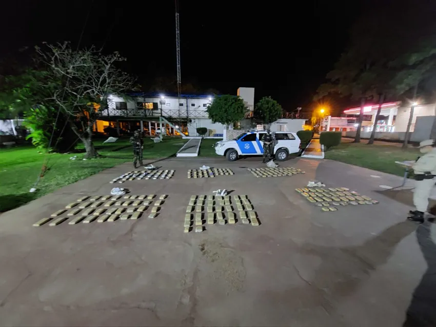 Al acercarse al lugar, ubicado en el kilómetro 1.238 del Río Paraná, detectaron varias bolsas de arpillera dispersas en la costa que contenían 213 "panes" de marihuana con un peso de más de 150 kilos.