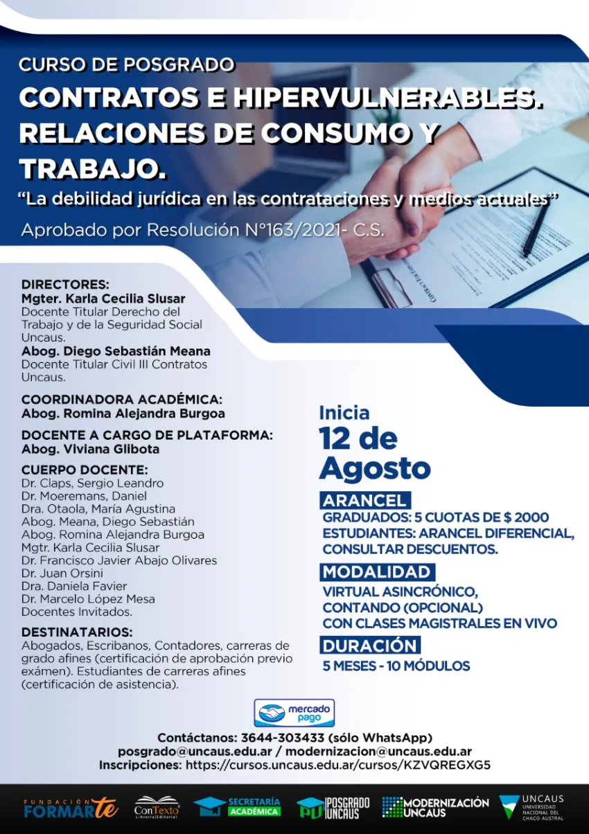 UNCAus invita al curso "Contratos e Hipervulnerables. Relaciones de Consumo y Trabajo"