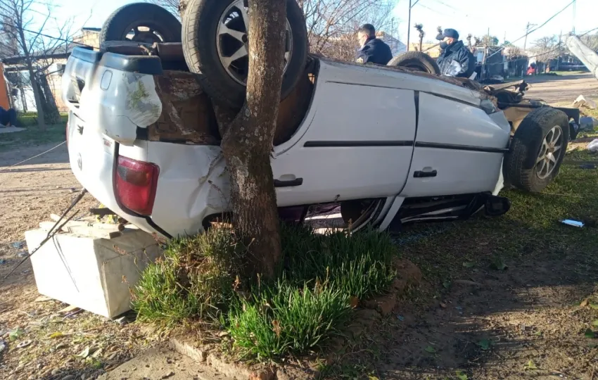 Exceso de velocidad, despiste, choque y vuelco: dos personas resultaron gravemente heridos