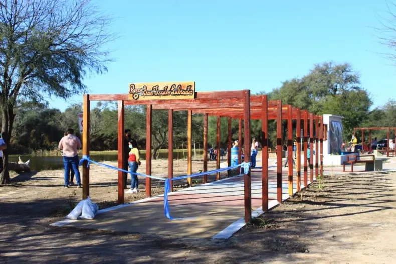 El paseo cuenta con murales, bancos de madera, una fuente de agua, pérgolas en su recorrido y la imagen del patrono del agua y los agricultores.