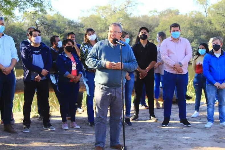 En el camping "El Malha" el intendente Pio Sander, junto a la vicegobernadora Analía Rach Quiroga, la presidenta del concejo deliberante Soledad Rach, el presidente de la Cooperativa Gregorio Portillo Agustín Detzel, concejales y funcionarios municipales participaron de la inauguración del "Paseo San Isidro Labrador".