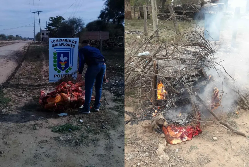 Ante esta situación el Juez de Paz Omar Berdon, dispuso la incineración de toda la carne incautada en presencia de dos testigos. Por otro lado, se prosiguen con las tareas investigativas para inspeccionar el lugar faena y determinar la procedencia del animal.