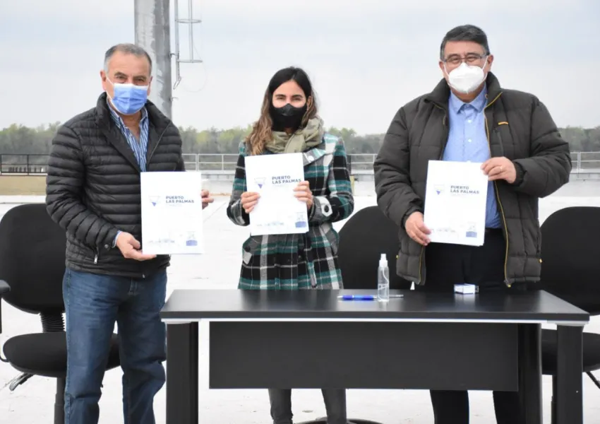 En el marco del programa "Ciudad Puerto", que lleva adelante el Gobierno Provincial mediante el Ministro de Planificación, Economía e infraestructura, para potenciar el desarrollo logístico en sinergia con el crecimiento de las localidades portuarias, la Administradora del Puerto Las Palmas, Constanza Prause, suscribió un convenio con los intendentes José Carbajal (La Leonesa) y Víctor Armella (Las Palmas), para avanzar en acciones conjuntas que permitan seguir fortaleciendo productivamente la región.