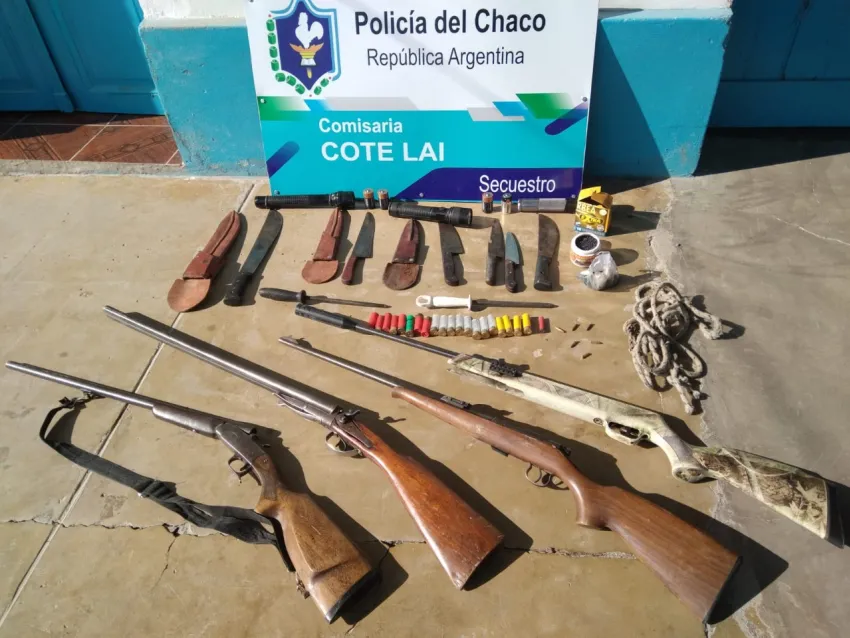 En el allanamiento, los uniformados, realizaron el secuestro de un automóvil Renault Oroch, dos escopetas calibre 16, un rifle calibre 22 con seis cartuchos, un rifle aire comprimido, cuatro cuchillos, y una soga de tres metros. Todos elementos de interés para la causa investigada.