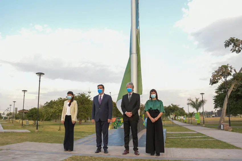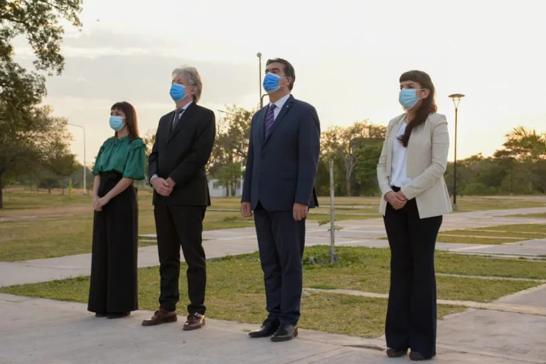 La ceremonia comenzó en las primeras horas de la jornada, con el izamiento del pabellón nacional y entonación de las estrofas del himno nacional. Momentos después, las autoridades se trasladaron a Casa de las Culturas, en donde se desarrolló el acto que inició con la promesa a la bandera de alumnos de 4° grado y homenajes a distintos actores sociales, culturales y políticos de la provincia.