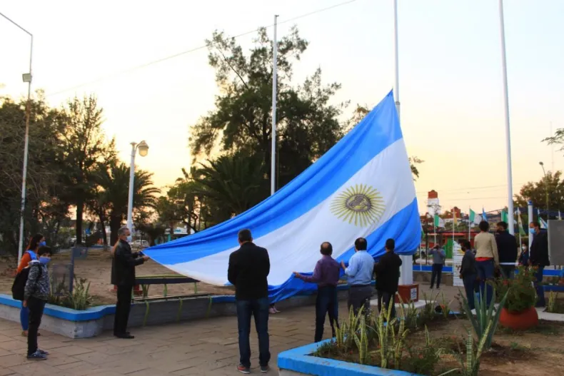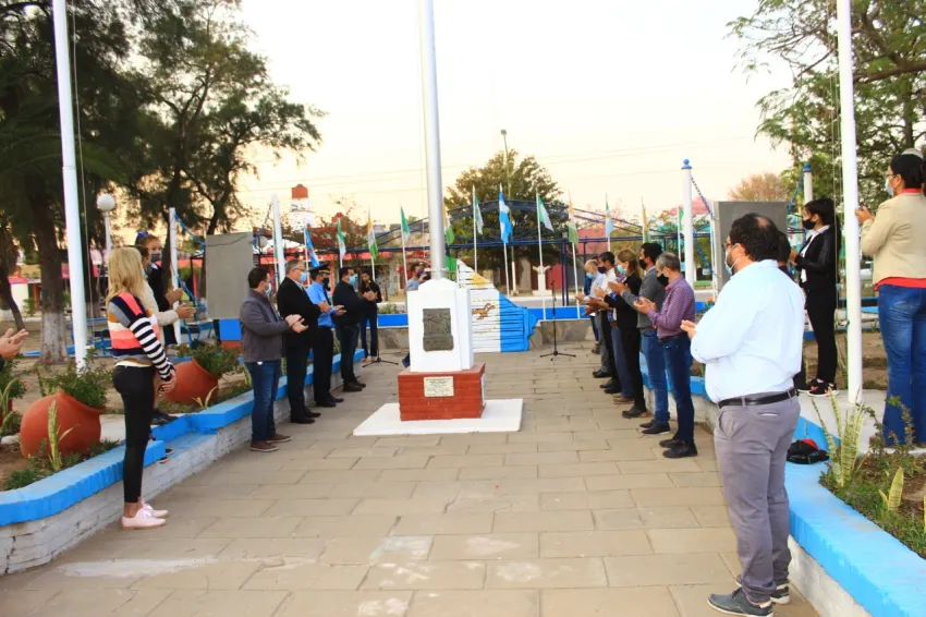 Tras el izamiento del pabellón nacional y las banderas de la provincia, wipalha y de la ciudad se leyó la reseña histórica.