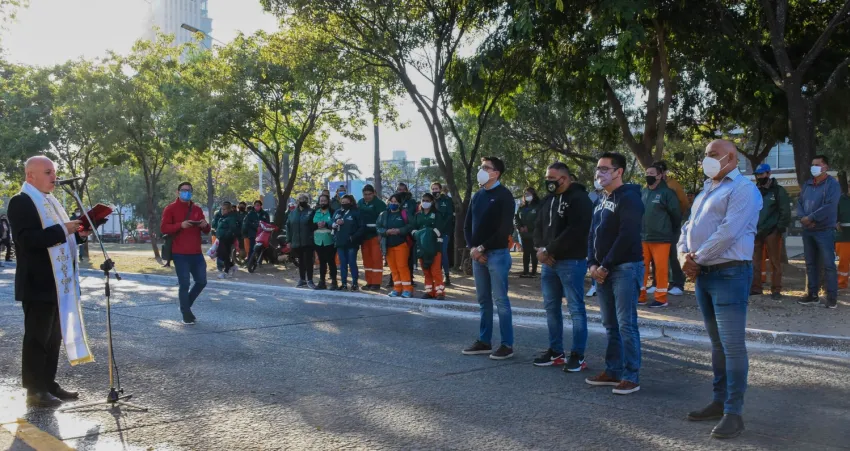 Gustavo Martínez acompañó a los trabajadores municipales durante la entronización y bendición de la imagen de San Cayetano en la Dirección General de Limpieza, en conmemoración del día del santo patrono del pan y del trabajo.