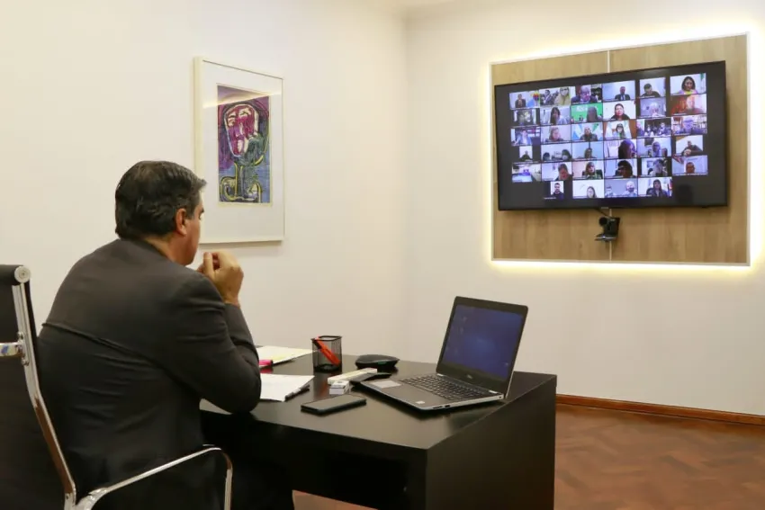 Capitanich presidió la sesión (realizada a través de plataforma virtual) en forma conjunta con el presidente de la Cámara de Diputados del Chaco, Hugo Sager; y el presidente del Superior Tribunal de Justicia de la Provincia, Rolando Toledo.