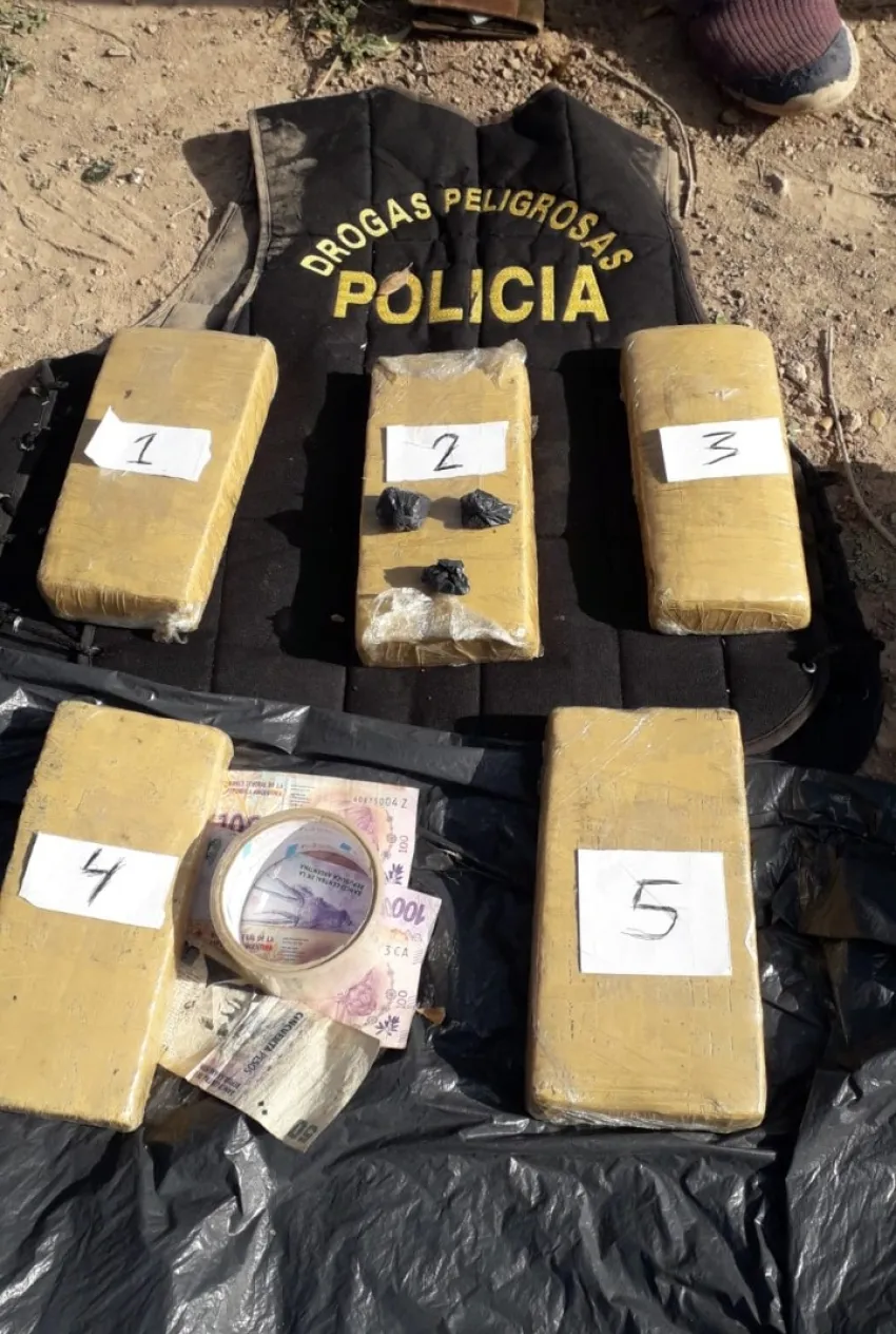 El conductor de la motocicleta llevaba 5 ladrillos en una bolsa que guardaba entre sus piernas antes de ser demorado por los efectivos de la División Operaciones Drogas Interior Sáenz Peña a eso de las 16 horas.
