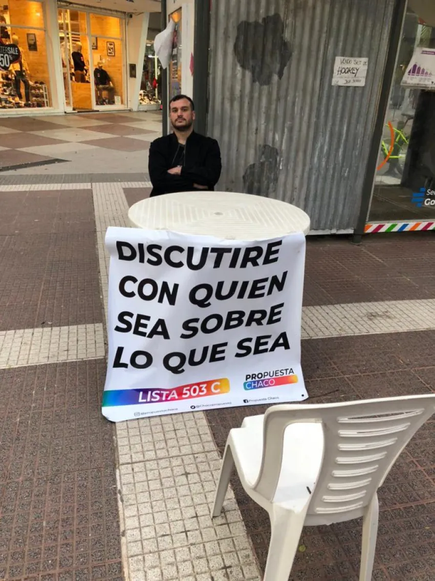 El precandidato a diputado provincial Iván Gyoker utilizó sus redes sociales para comunicar que hoy miércoles a las 17 horas se encontraría sobre la peatonal y Alberdi de Resistencia para "discutir con quien sea, sobre lo que sea".
