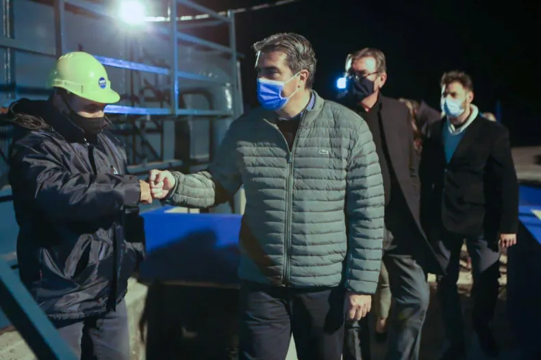 Por otra parte, el mandatario provincial también se hizo presente en las obras complementarias al segundo acueducto del interior, más específicamente a la bajada principal ubicada entre San Bernardo y Villa Berthet. En ese lugar se levantaron los primeros siete kilómetros de cañería (de 12 en total) que actuarán de conexión entre el acueducto principal y las dotaciones locales, significando esta longitud más del 50% de la obra concretada.