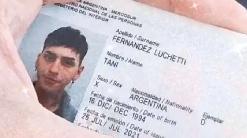 Inició el trámite para identificarse como persona no binaria apenas el Gobierno nacional habilitó esa posibilidad el mes pasado. Bajó el rótulo "sexo", en el DNI de Tani figura una "X". "No me considero hombre, me considero persona no binaria", había dicho cuando el Ejecutivo realizó el anuncio.