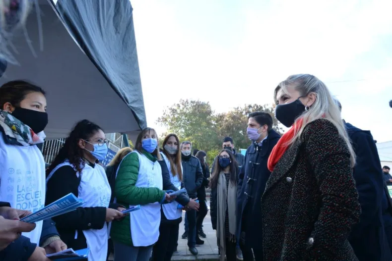 Con la presencia del ministro de Educación de la Nación, Nicolás Trotta, y de la ministra chaqueña Daniela Torrente este viernes se concretó el lanzamiento de "La Escuela donde vos estás" desde la EEP Nº 596 "Francisco Narcisa de Laprida", de Resistencia. Esta iniciativa se enmarca en "El Estado donde vos estás", que reúne a todos los servicios y programas de los Gobiernos nacional y provincial, con postas fijas y móviles en todo el Chaco.