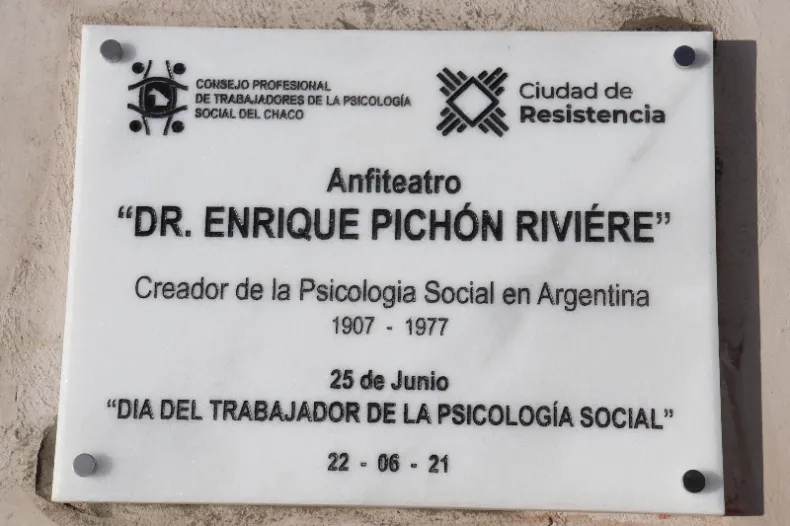 En el anfiteatro de la plaza España se reinstaló una placa que lleva el nombre de "Enrique Pichón Riviere" quien fue uno de los creadores de la psicología social en la Argentina. El intendente Gustavo Martínez acompañó la iniciativa impulsada por trabajadores de la Psicología Social del Chaco y la Comisión Nomencladora Municipal.