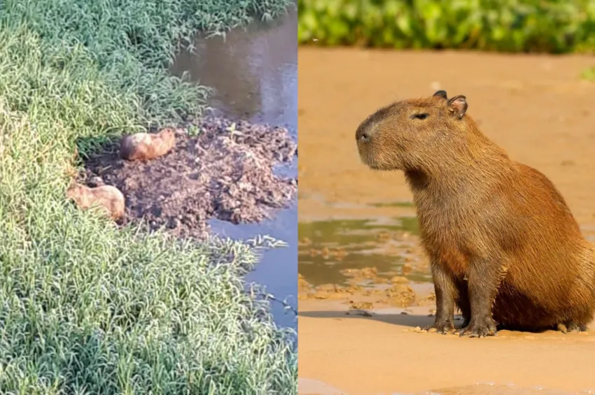 Apareció una familia de carpinchos rondando la zona del Río Negro y Av. Sarmiento